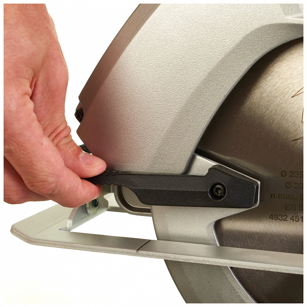 Блокировка шпинделя обеспечивает быструю и легкую замену пильного диска.