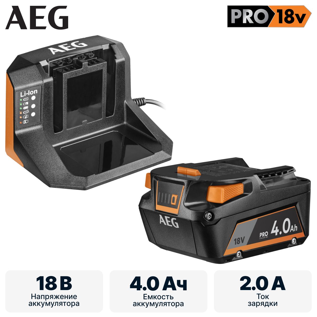 Аккумуляторная технология AEG Lithium-Ion обеспечивает оптимальное питание инструментов на единой аккумуляторной платформе с тройной защитой.