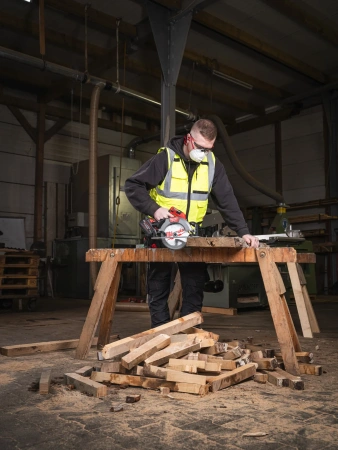 Лезвие длиной 190 мм обеспечивает глубину реза 68 мм, что позволяет одновременно резать стопку из трех плит OSB толщиной 22 мм.