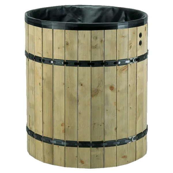 Не секрет, что не все растения в вашем саду одинаково любят водопроводную воду, например, камелии и рододендрон вообще ее не переносят. А природная вода, насыщенная полезными элементами, подходит для полива любых растений, от декоративных, до плодоносящих. Бочка для дождевой воды представляет собой кадку из деревянных дощечек, обработанных специальным образом, и вставленный внутрь кадки плотный пластиковый мешок. Специальный метод соединения элементов резервуара делает его сборку очень быстрой и простой. Прочные качественные материалы гарантируют длительный срок службы этого приспособления. Кроме того, бочка для дождевой воды не боится перепадов температур и морозоустойчива.