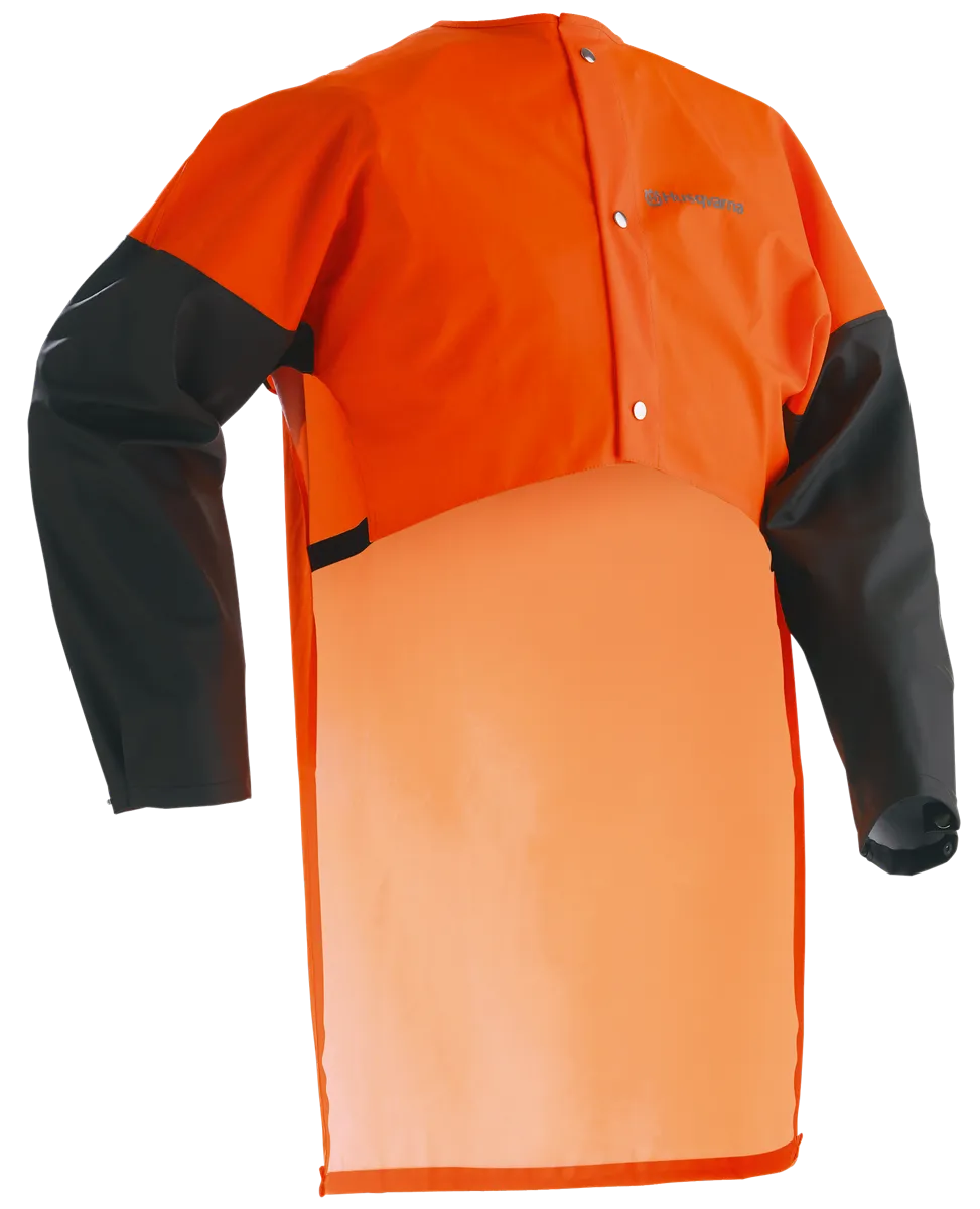 Прекрасную защиту от дождя лесорубу или простому садоводу обеспечит качественный непромокаемый дождевик-фрак. Эта защитная одежда отличается легкостью, водонепроницаемостью и удобством ношения. Такой дождевик обладает удлиненной и расширенной спинкой, длинными рукавами на кнопках и расположенными спереди регулируемыми застежками. Дождевик-фрак Husqvarna не позволит промокнуть, пока вы работаете с бензопилой.