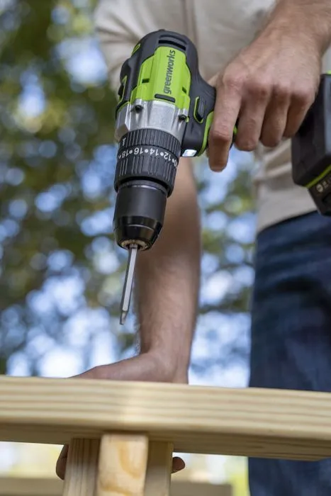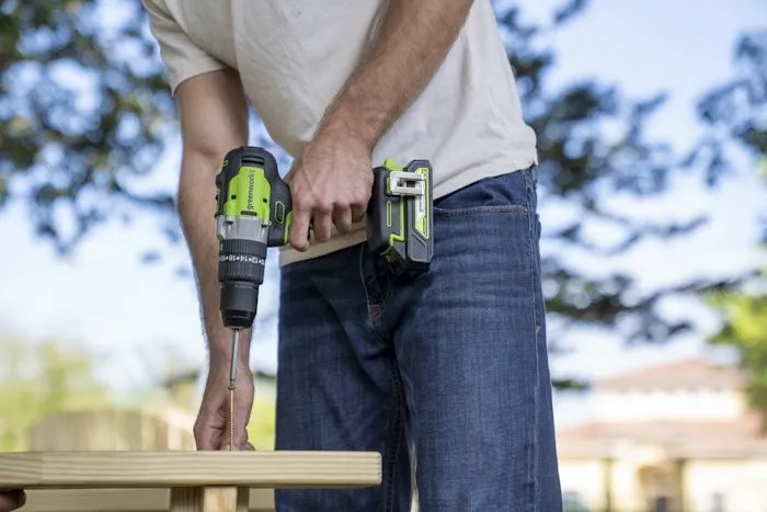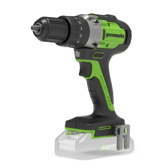 Дрель работает от аккумулятора 24 В, что на 33% мощнее обычного 18-ти вольтового стандарта на рынке дрелей. Важным плюсом этого аккумулятора является то, что он совместим с более 70 устройствами линейки Greenworks G-24 24V.
