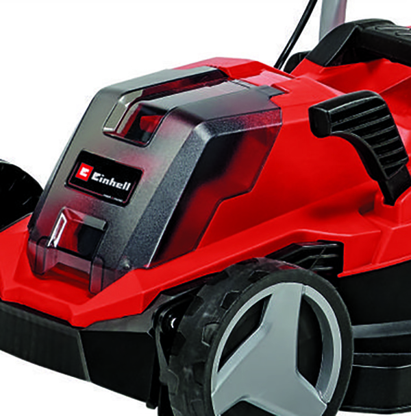 Большие колеса не портят газон при скосе. 5-позиционная регулировка высоты скоса, 3 положения рукоятки управления в зависимости от роста пользователя, а также индикатор заполняемости травосборника, позволяет быстро и без усталости осуществлять скос травы в течение долгого времени. Косилка оснащена высококачественным, ударопрочным пластмассовым корпусом и складной длинной ручкой, позволяющей укладывать косилку в замкнутые пространства.