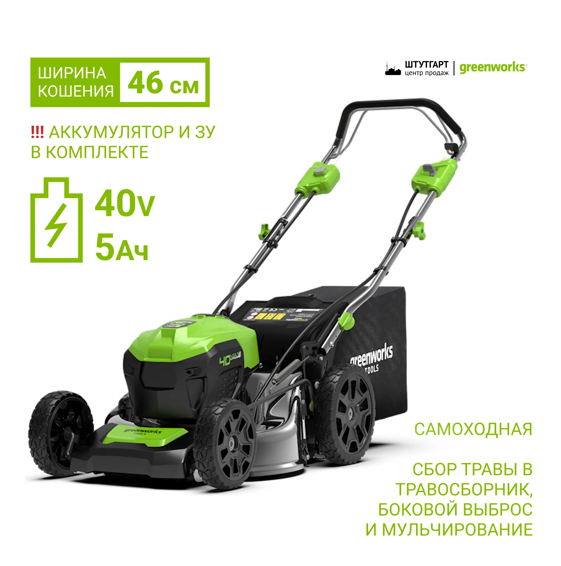 Газонокосилка имеет ширину скашивания 46 см — достаточно большую, чтобы обработать площадь до 750 м2 на одной зарядке благодаря двум слотам для батареек и достаточно маленькую, чтобы хранить на складе с другими инструментами.