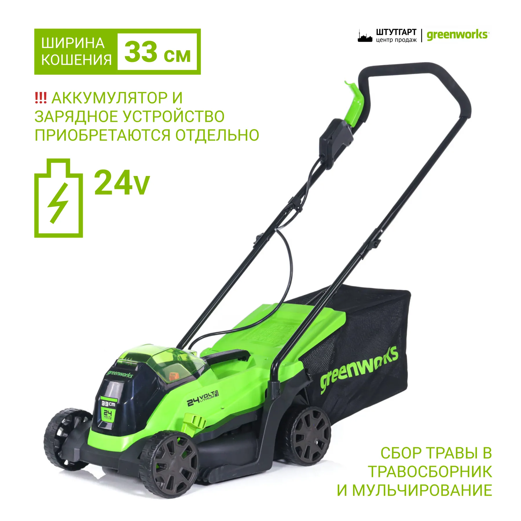 Благодаря прочной режущей деке шириной 33 см скошенная трава собирается в просторный травосборник на складном каркасе емкостью 30 л. Высота стрижки с 5 ступенями легко регулируется в диапазоне 25-75 мм с помощью ручки у переднего колеса, что позволяет подобрать оптимальный режим для конкретной работы. Также газонокосилка может работать в режиме мульчирования.