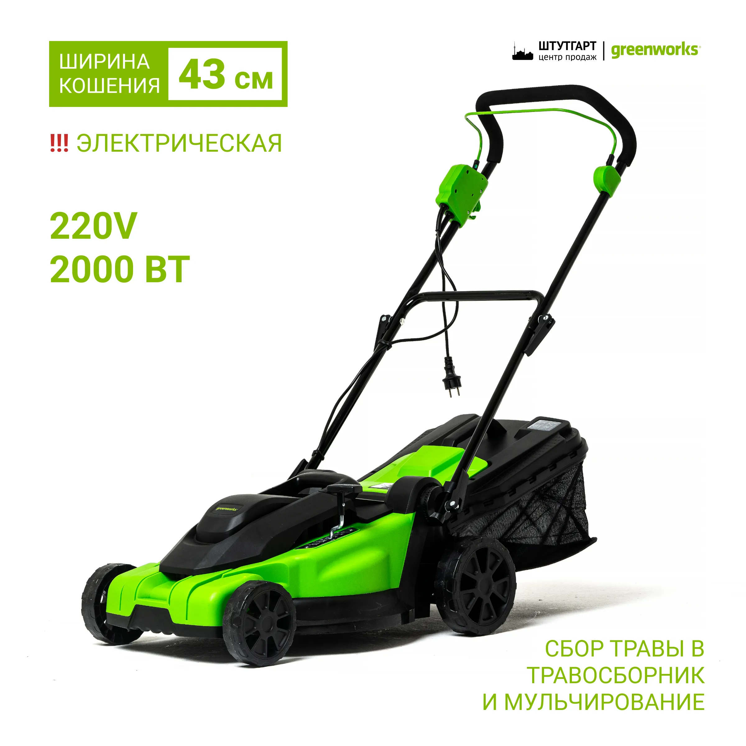 Ширина покоса 43 см, благодаря этому вы сможете быстро обрабатывать большие площади. Высота скашивания регулируется от 2 до 7 см. У газонокосилки есть два режима кошения: мульчирование и сбор травы в травосборник, объемом на 45 литров, что даст вам возможность работать долго без необходимости его очищения. Травосборник оснащен стальным каркасом и складывающимся мешком, поэтому не займет много места в вашем гараже или сарае. Ручка газонокосилки имеет эргономичную форму и складывается, что так же экономит место при хранение газонокосилки. В корпус вмонтирована ручка для удобной переноски газонокосилки.
