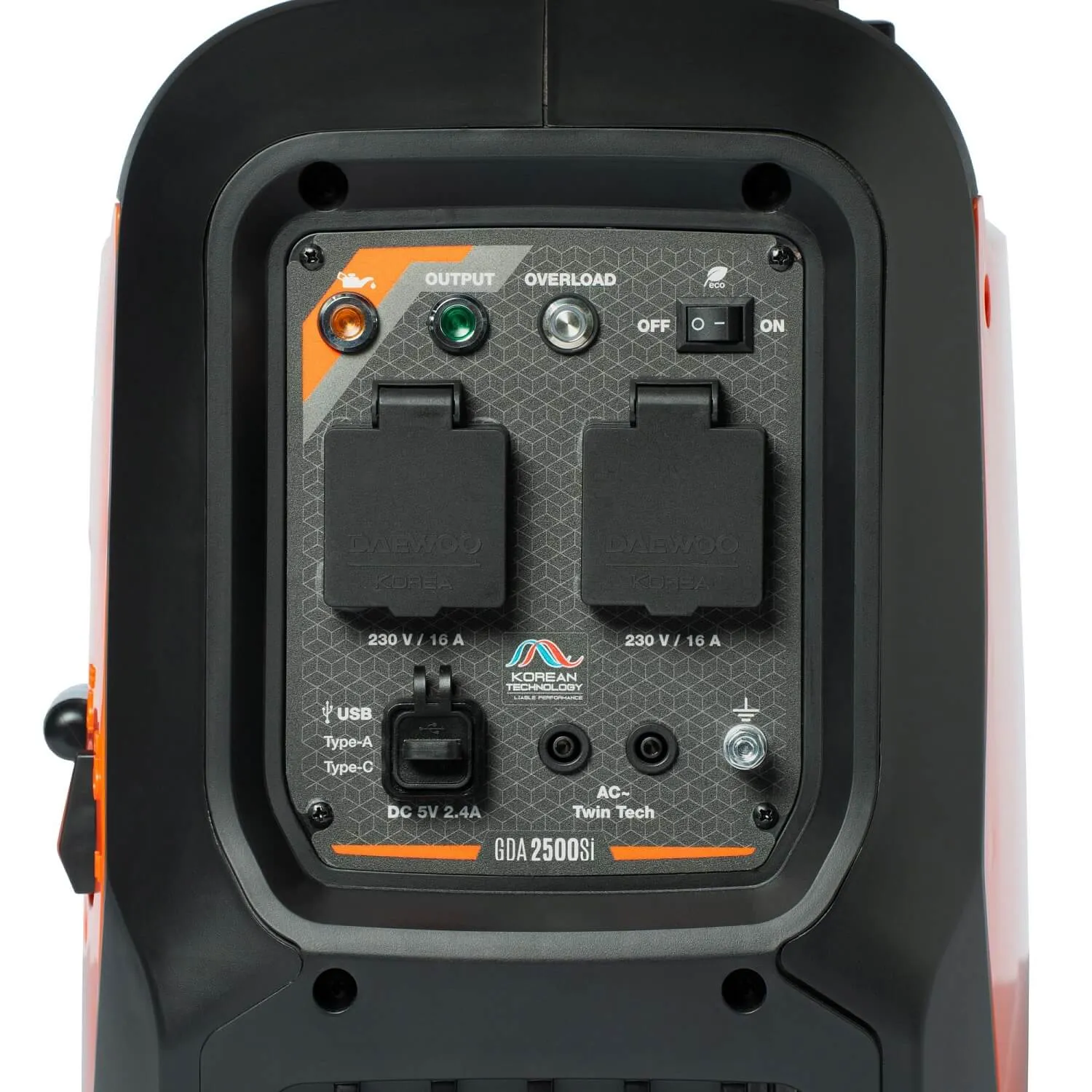 4 розетки для подключения. Генератор оснащен 4-мя розетками для подключения потребителей: 2-ве розетки 230В, 16А и 2 USB разъема 5В 2.4А: Type-A и Type-C.