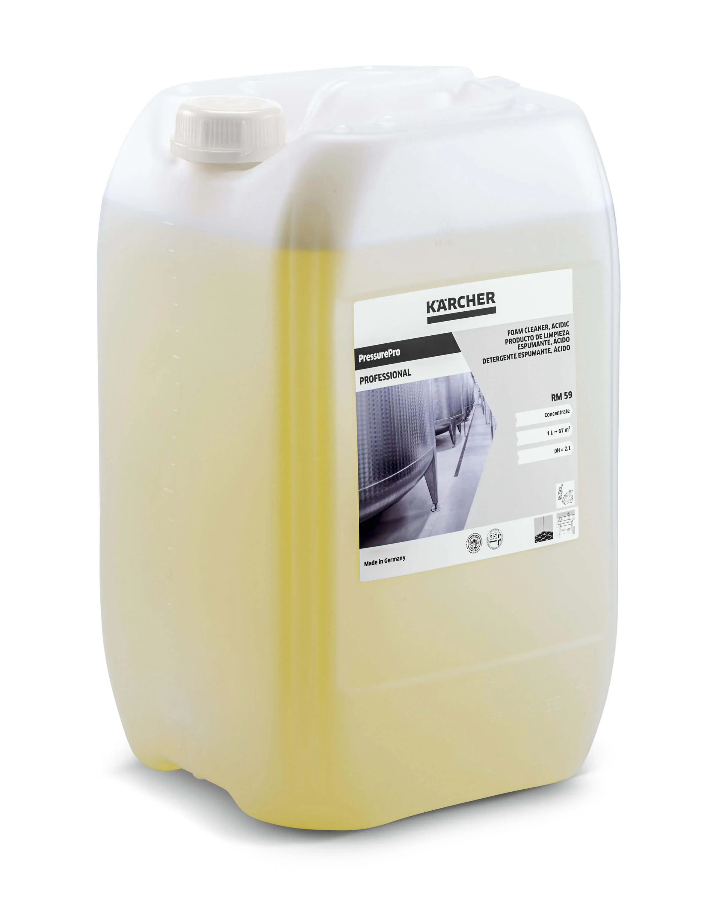 Можно наносить вручную, с помощью аппарата высокого давления и сопла для пенной чистки или аппарата для пенной чистки. Дозировка: ручное применение 10%, чистка высоким давлением 2–5%, FS 2000 2–4%, кислое pH: 2 (концентрат), 300 м2/л.