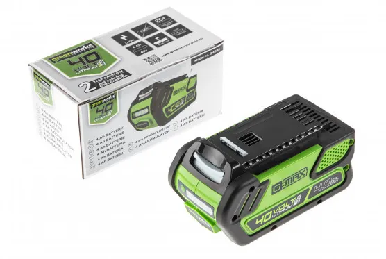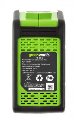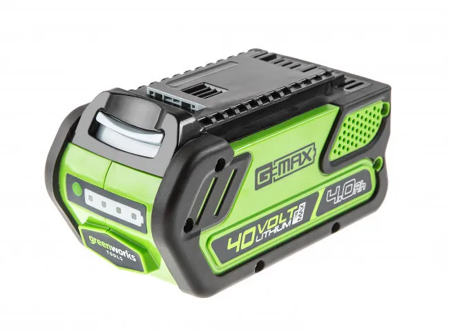 Максимальное время автономной работы - 20 минут от 4 Ач батареи. Безопасность работ обеспечит предохранитель от случайного включения. Культиватор работает от аккумуляторной батареи G-MAX 40V (2 Ач, 4 Ач, 5Ач поставляется отдельно), которую можно использовать другими с устройствами линейки 40V.