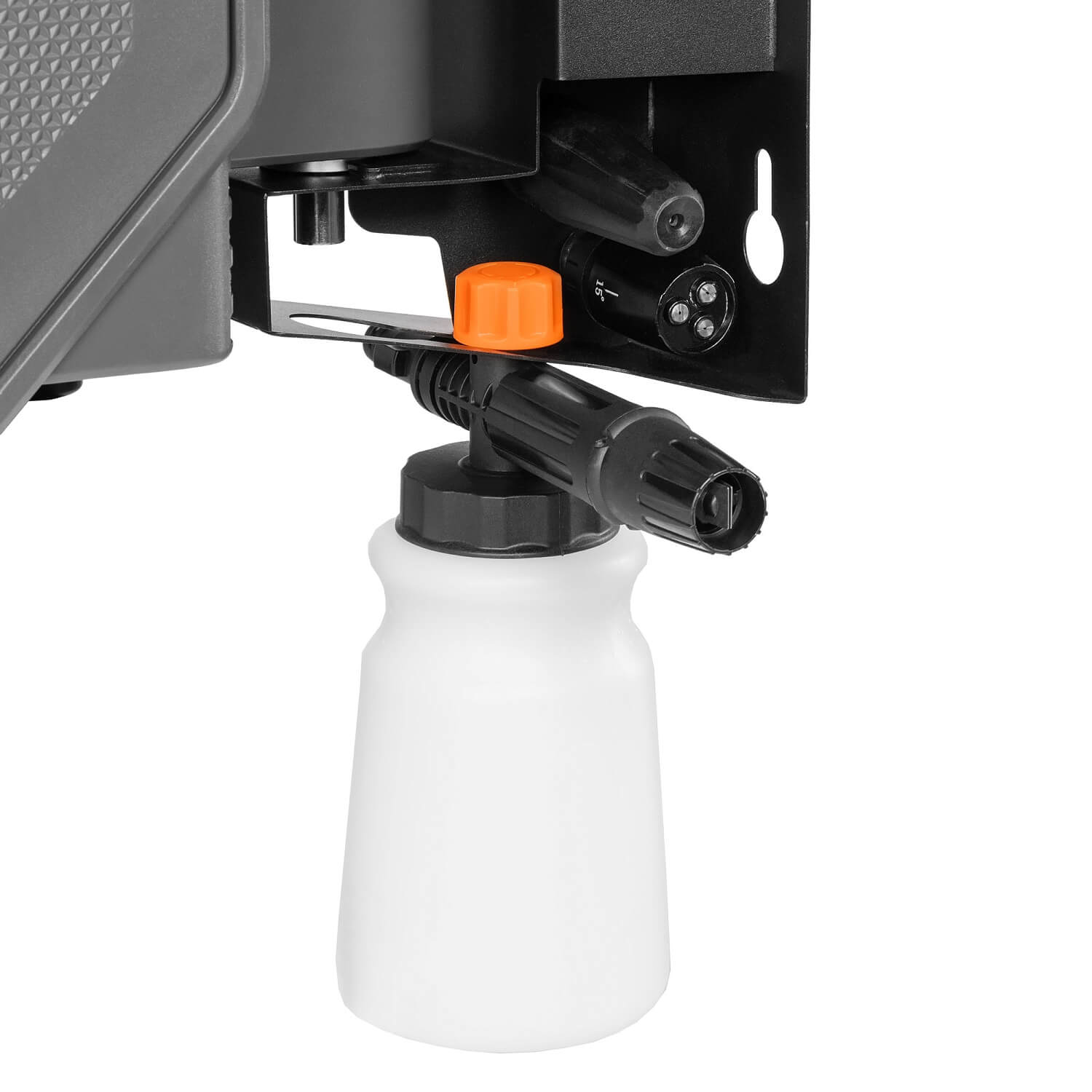 Байонетная система Quick Connect позволяет быстро заменить струйную трубку на пеногенератор без использования резьбовых соединений. Пистолет подключается к шлангу высокого давления с помощью быстросъемного соединения 3/8".