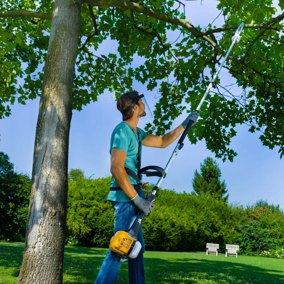 В комплекте дополнительные насадки: цепная садовая пила, удлинитель и кусторез. Цепная садовая пила предназначена для среза сухих веток, деревьев и кустов. Насадка-кусторез позволяет формировать кроны живых изгородей и кустарников.