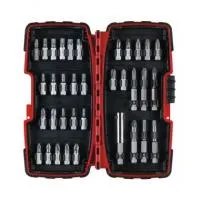 - биты длиной 25 мм: x2 PH1, x2 PZ1, x2 TX10, x3 TX25, x3 PH2, x3 PZ2, x2 TX15, x2 TX30, x2 PH3, x2 PZ3, x3 TX20, x2 TX40