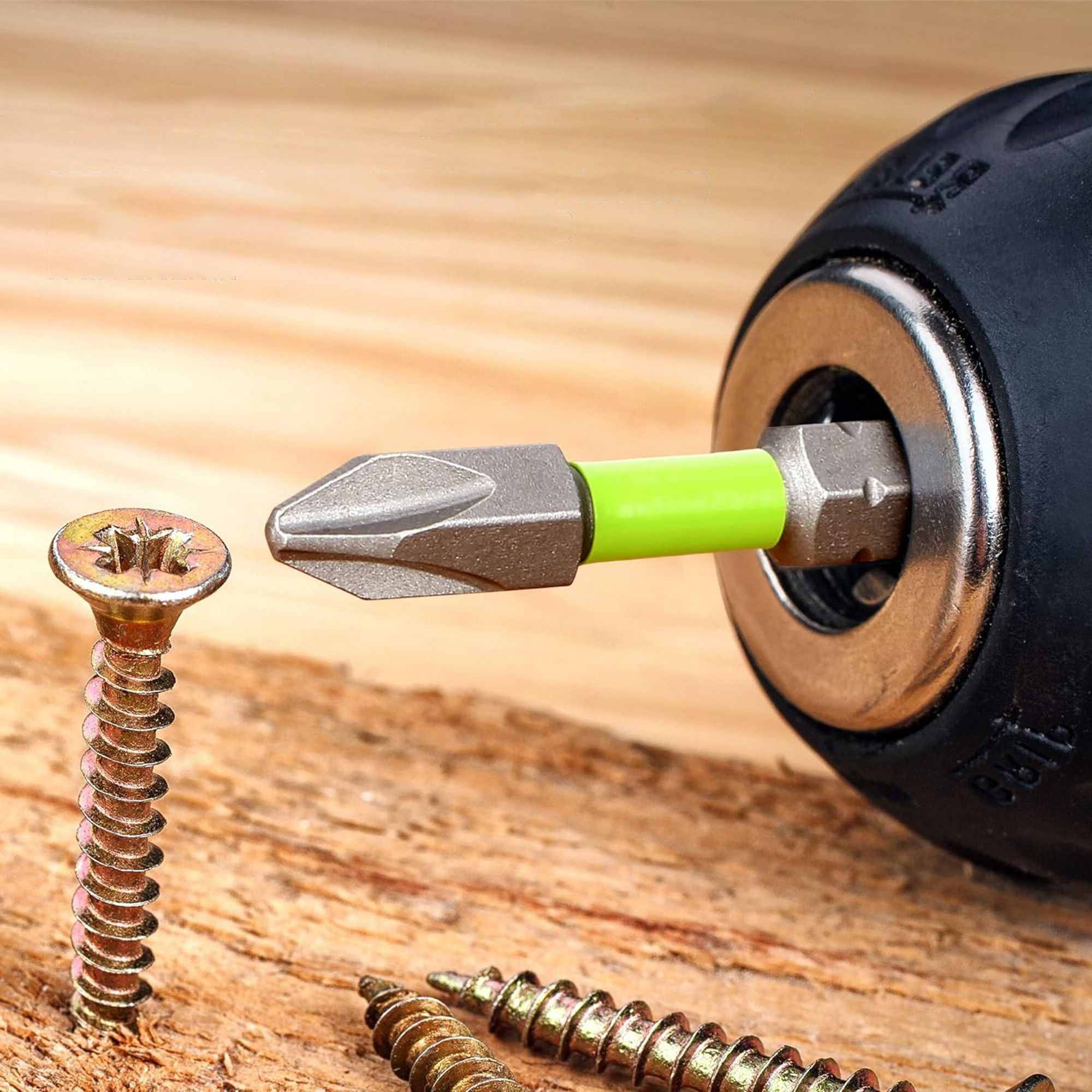• Биты 25 мм, из стали S2 (27 шт): PZ1, PZ2×4, PZ3, PH1, PH2×2, PH3, T10, T15, T20×2, T25×4, T27, T30×4, T40, H3, H4, H5.
