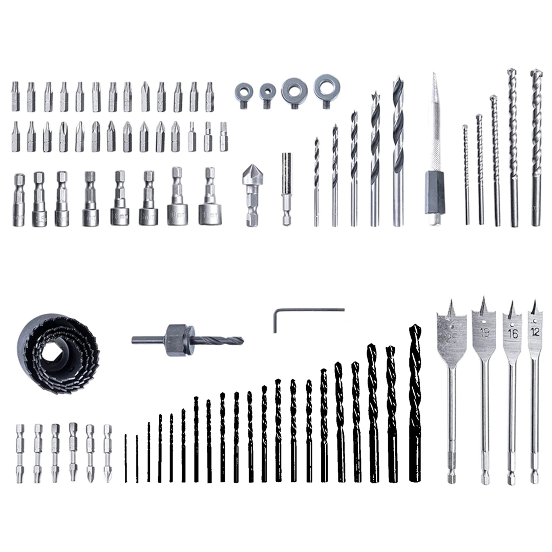 • Полная готовность к работе. В одном наборе собраны инструменты для обработки металла, дерева и бетона, что избавляет от необходимости докупать оснастку для разных материалов.