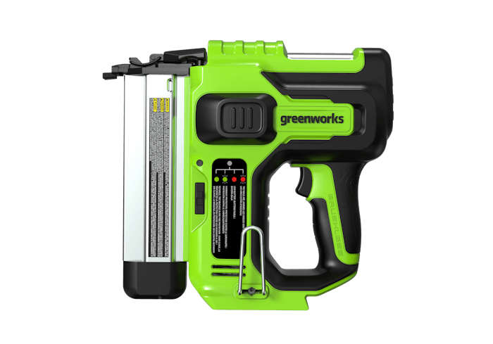 24 В, бесщеточный мотор, 100 ударов/мин, магазин 110 гвоздей, тип гвоздей 18GA, сечение 1,25мм х 1,05мм, длина 19-50,8 мм, вес 3,05 кг