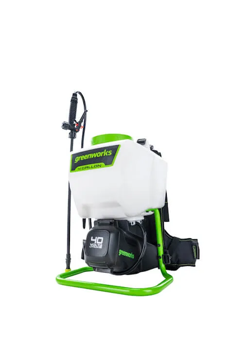 Максимальная производительность опрыскивателя 1,9 литра в минуту обеспечивается электрическим двигателем, работающим от батарей 40 В. Насос мембранного типа.