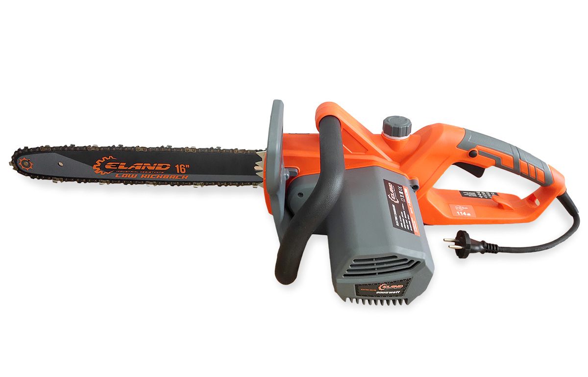 Электрический двигатель ELAND.Cпециально разработан для цепных пил, обладает высокой мощностью 2000 Вт и низким уровнем шума. Обеспечивает эффективную работу пилы с различным типом древесины.