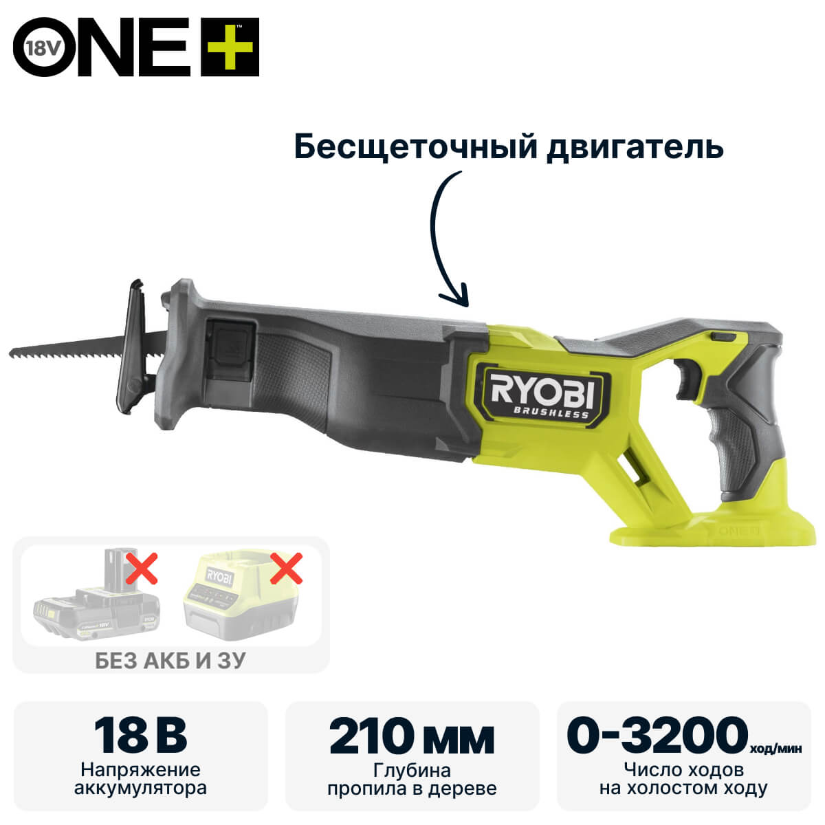 18 В, бесщеточный, ход 32 мм, 3200 ход/мин, дерево 210 мм, бесключевая замена полотен, подсветка, плавный пуск, вес 2,5 кг