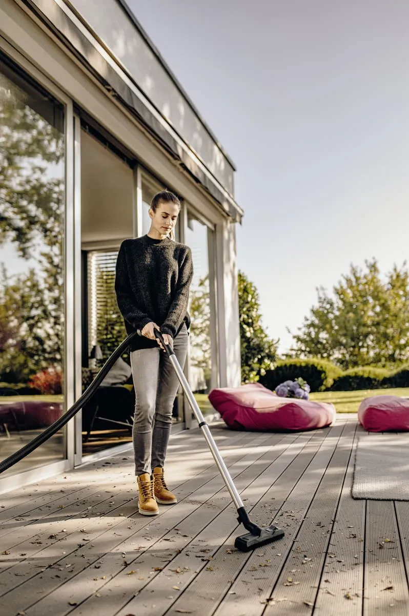 Приятным дополнением к совершенной технологичности этого устройства является плоский складчатый фильтр в специальной кассете и система самоочистки фильтра. Наличие штепсельной розетки позволяет подключить к этому пылесосу электроинструменты. Данный агрегат идеально подойдет для уборки прихожей в доме, территории вокруг дома, гаража, подвала, домашней мастерской. Также его можно использовать для сбора мусора во время ремонтных и строительных работ.