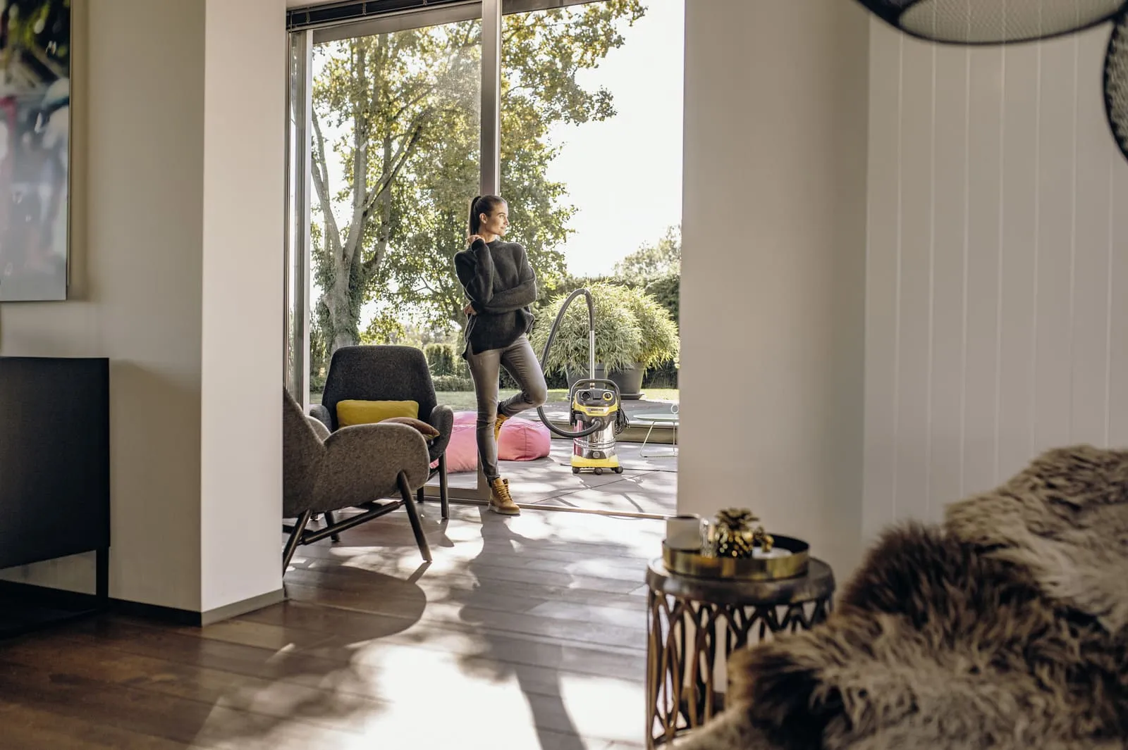 Пылесос Karcher WD 6 P S V-30/6/22/T может работать в двух режимах: в режиме сухой и влажной уборки. Если вам требуется убрать пыль, песок или грязь в прихожей или в салоне авто, очисть домашнюю мастерскую от опилок, стружек и другого твердого мусора, собрать крупный или мелкий мусор, оставшийся после ремонтных или строительных работ, то в этих и других похожих случаях лучше выбрать режим сухой уборки. Однако если вам необходимо убрать мокрый снег с ковролина или лужи, образовавшиеся на террасе или в прихожей во время дождя, а также собрать большие объемы воды, например, в случае поломки стиральной машины, то здесь лучше остановить свой выбор на режиме влажной уборки.