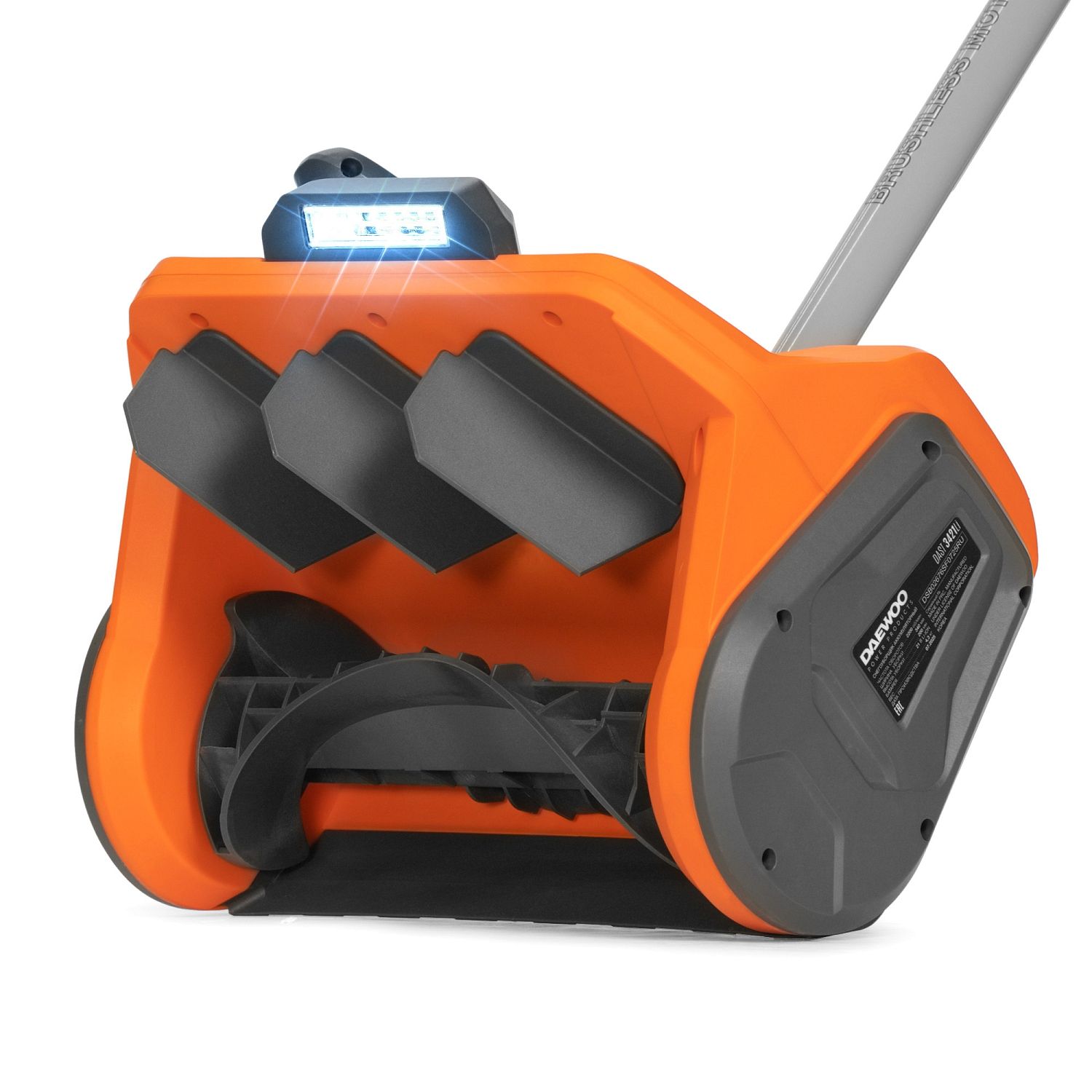 LED фара. Яркая светодиодная фара освещает рабочую зону перед снегоуборщиком, обеспечивая комфортное и безопасное выполнение работ даже в условиях недостаточного освещения или ночью.
