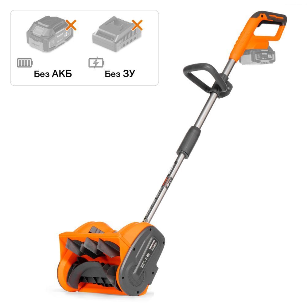 бесщеточный мотор 21 В, раб. ширина 30 см, высота захвата 11 см, дальность выброса снега 4 м, вес 3,58 кг