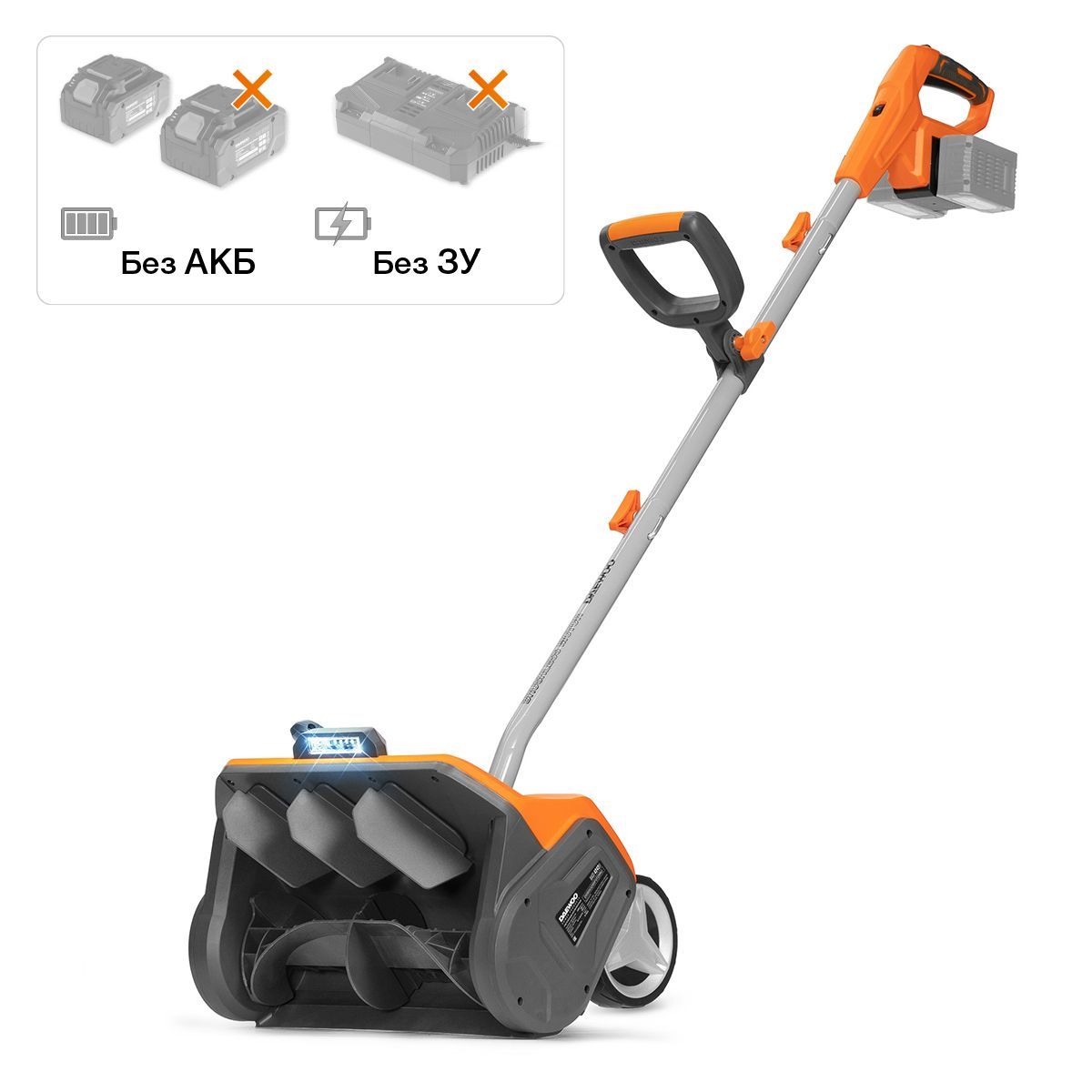 бесщеточный мотор 21+21 В, раб. ширина 42 см, высота захвата 22 см, дальность выброса снега 6 м, вес 6,8 кг