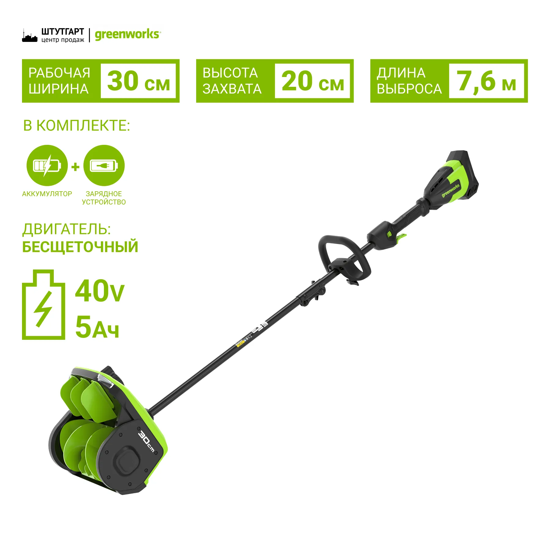 Снеголопата аккумуляторная Greenworks 40V GD40SS2K5 работает на самых популярных аккумуляторах серии 40V, которые совместимы с более чем 50 другими устройствами Greenworks.