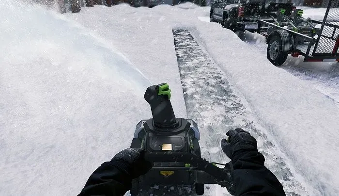 Для безопасного включения предусмотрена кнопка-предохранитель, как и на всей аккумуляторной технике Greenworks. Ручка имеет складную конструкцию. Снегоуборщик работает от аккумуляторной батареи 82V (2,5 или 5 Ампер/час), которую можно использовать с другими с устройствами Greenworks из линейки 82V.
