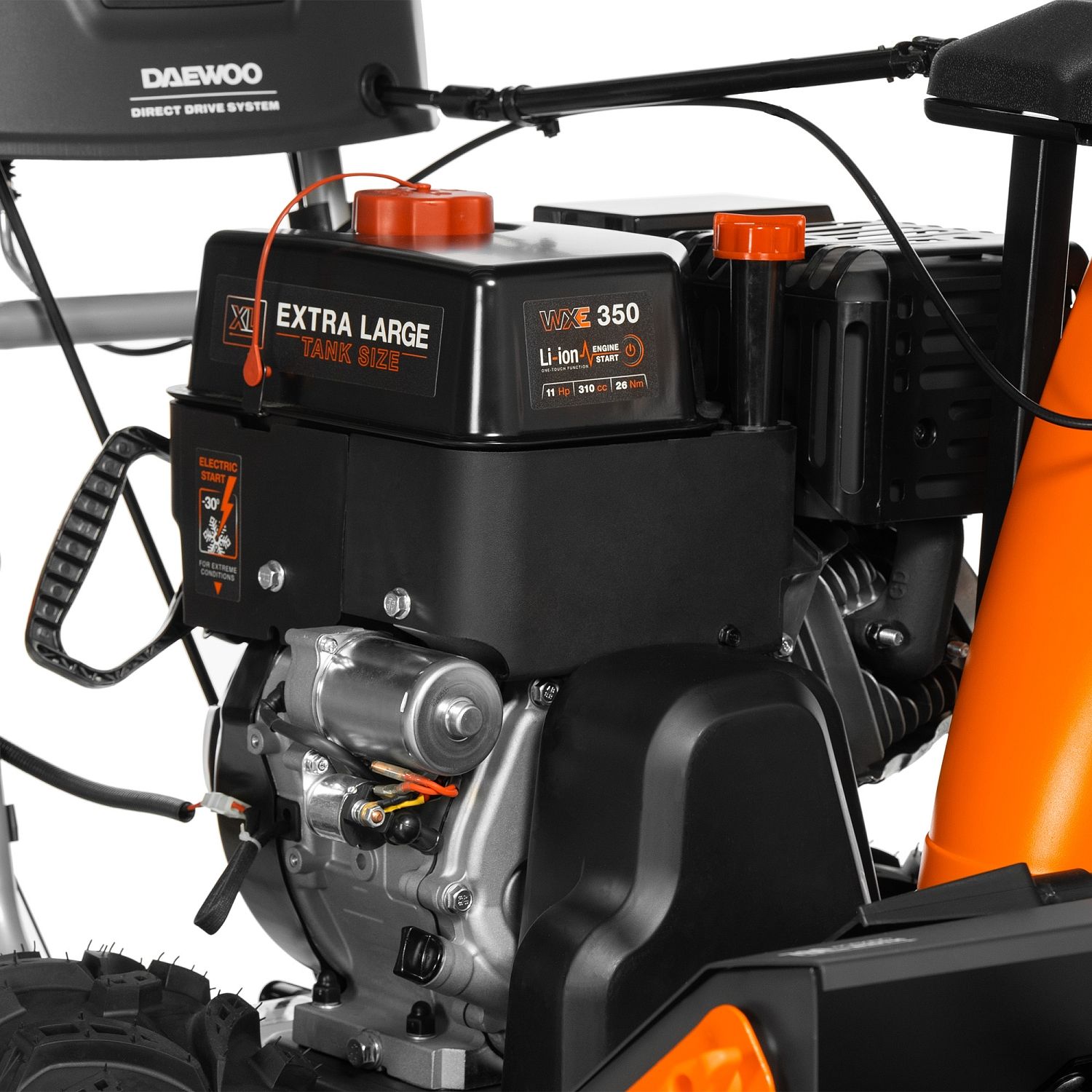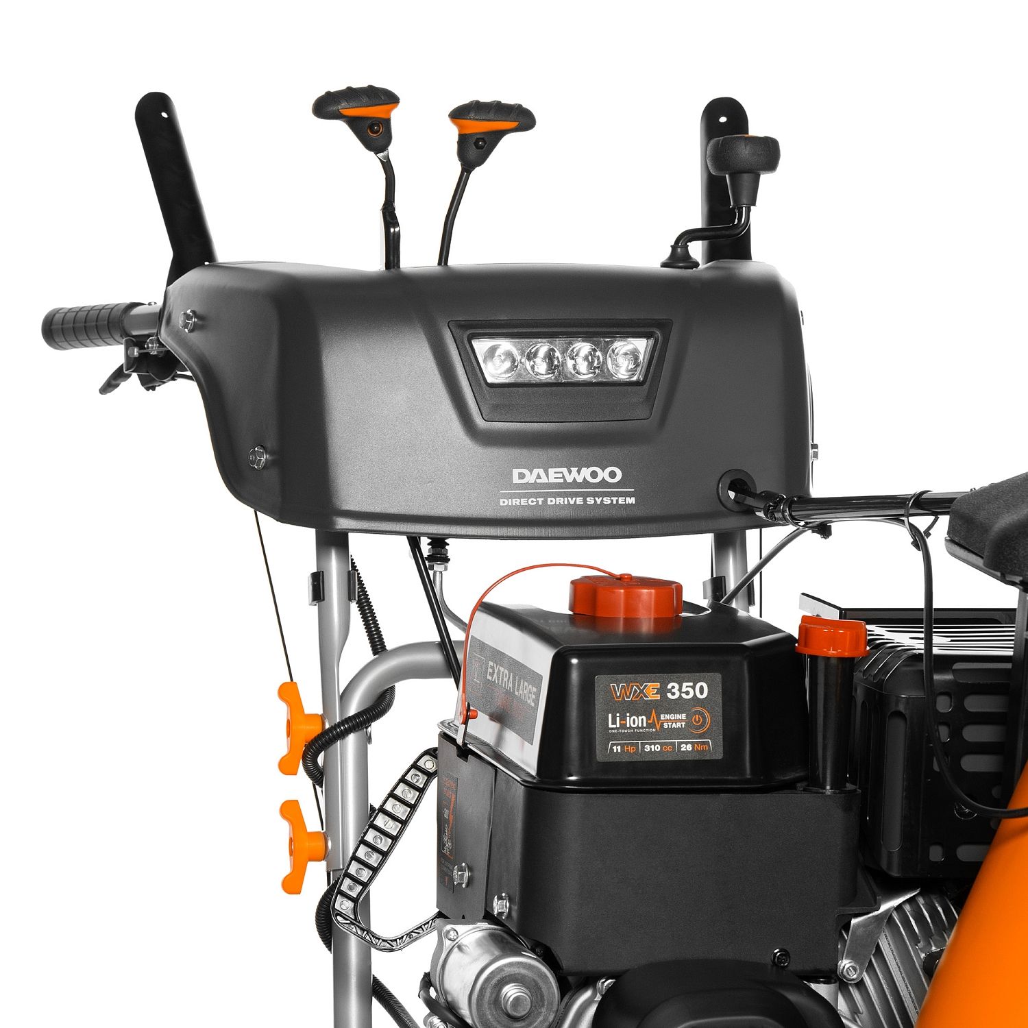 Яркая LED фара обеспечивает освещение рабочей зоны, помогая работать в темное время суток, и делает работающий снегоуборщик заметным для окружающий, ограждая от попадания под выбрасываемый снег.