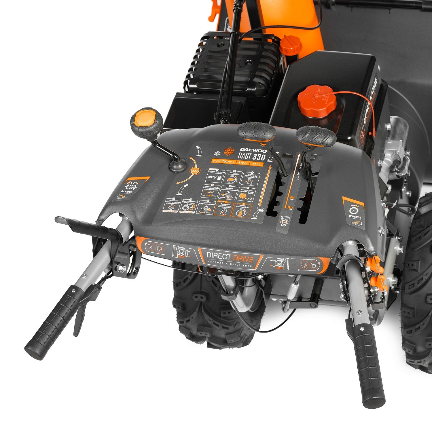Панель управления с системой изменения скорости передвижения, направления и дальности выброса снега обеспечивает комфортное управление и работу со снегоуборщиком.