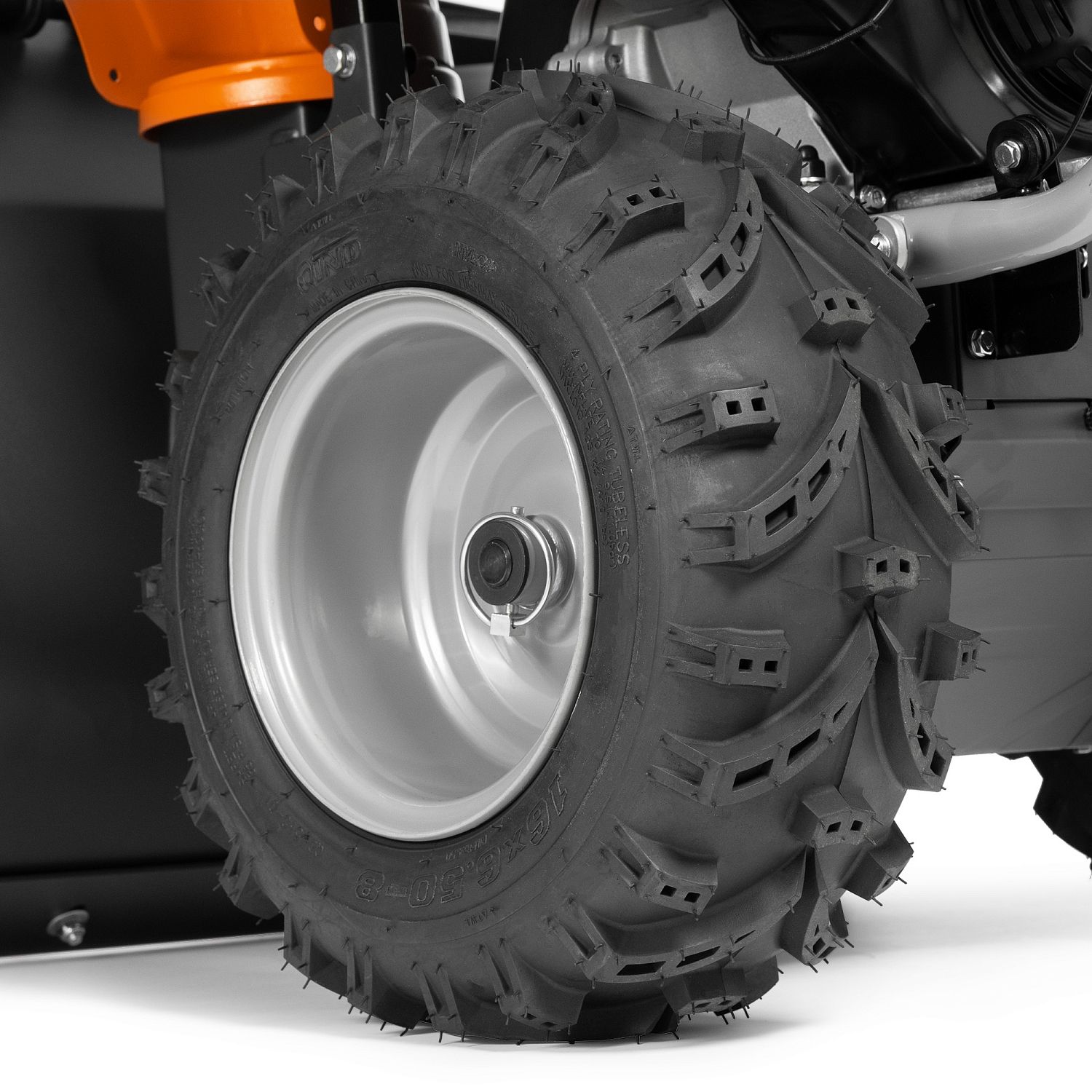 Идеальная проходимость и маневренность. Основной вес снегоуборщика приходится на ось колес, что гарантирует лучшее сцепление с поверхностью. Такая развесовка предоставляет оператору легкость маневрирования и лучшую проходимость в классе.