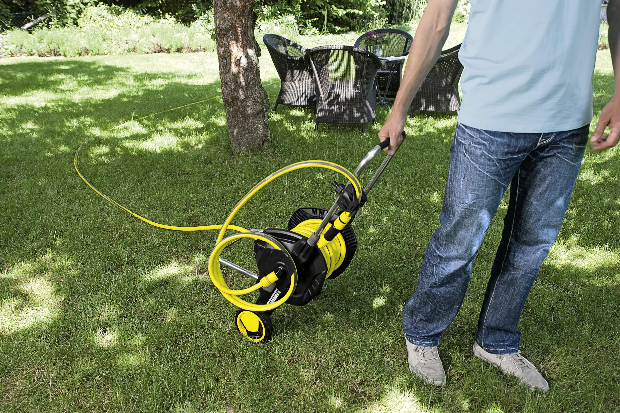 Практичная тележка представляет собой удобную конструкцию для хранения и переноски садовых принадлежностей для полива. Данное устройство поставляется в смонтированном состоянии и оптимально укомплектованным, поэтому оно полностью готово к мгновенному использованию. В данный набор входит 20-ти метровый армированный шланг PrimoFlex, 4 прочных универсальных коннектора, один их которых оснащен аквастопом, и надежный штуцер с переходником для подключения шланга к кранам с внутренним сечением G 3/4 и G 1/2. Для осуществления различного вида полива в представленный комплект также входит надежный и удобный распылитель “Plus”, который способен вырабатывать несколько видов струй (от направленной до струи с эффектом “мягкого душа”).