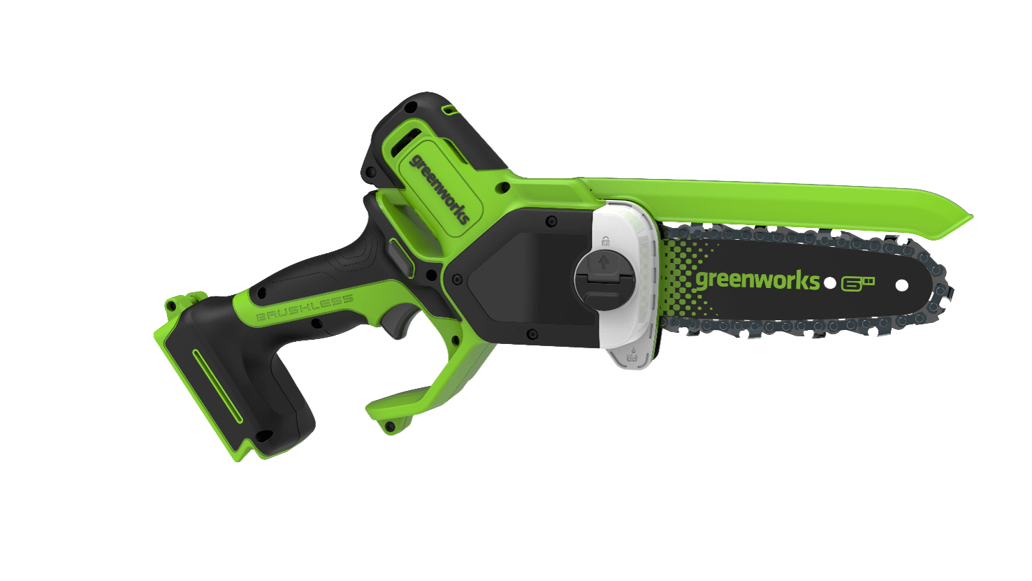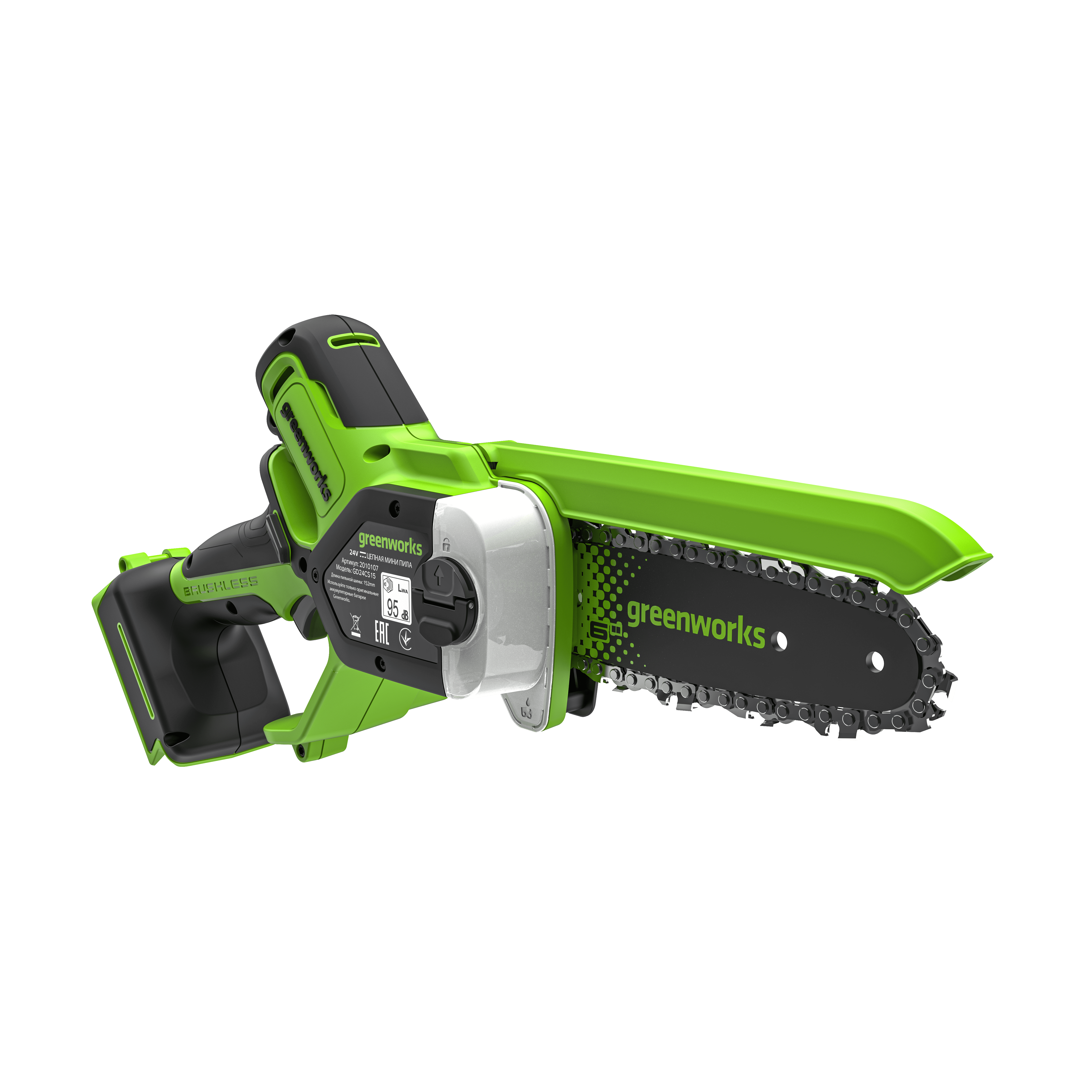 Работой пилы управляет инновационная система Greenworks Intelligent Power — интеллектуальная система контроля и управления батареей, инструментом и зарядным устройством. Она обеспечивает максимальную производительность и долгий срок службы пилы.