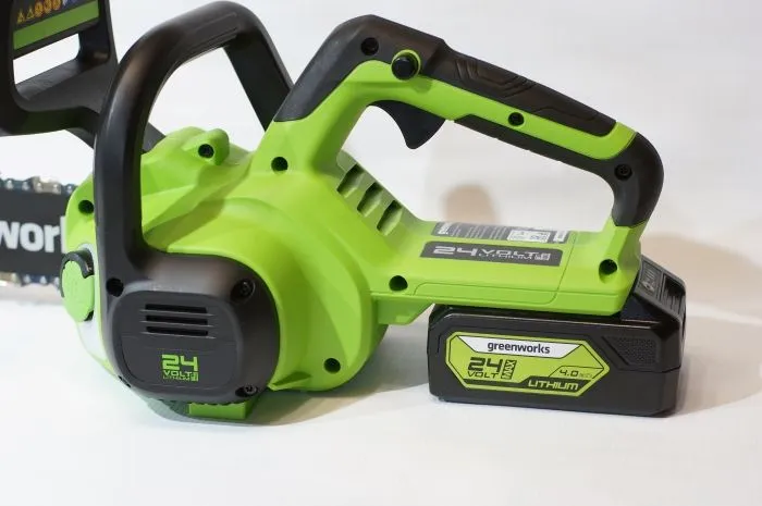 Работает от Li-Ion аккумулятора 24V, совместимого с 70 инструментами из линейки Greenworks 24V.