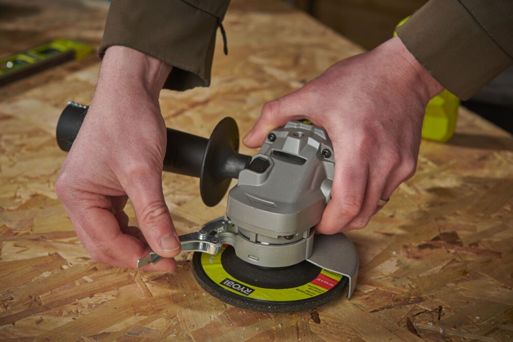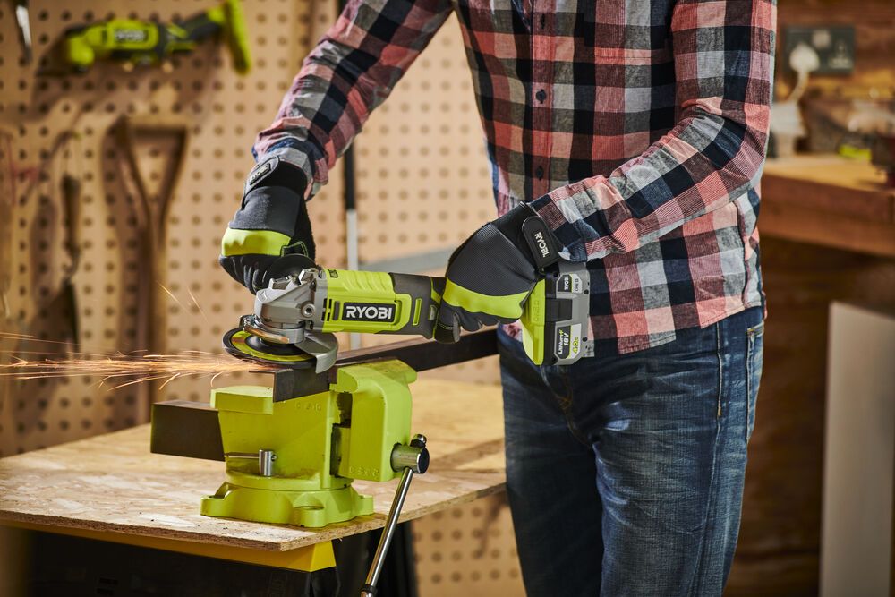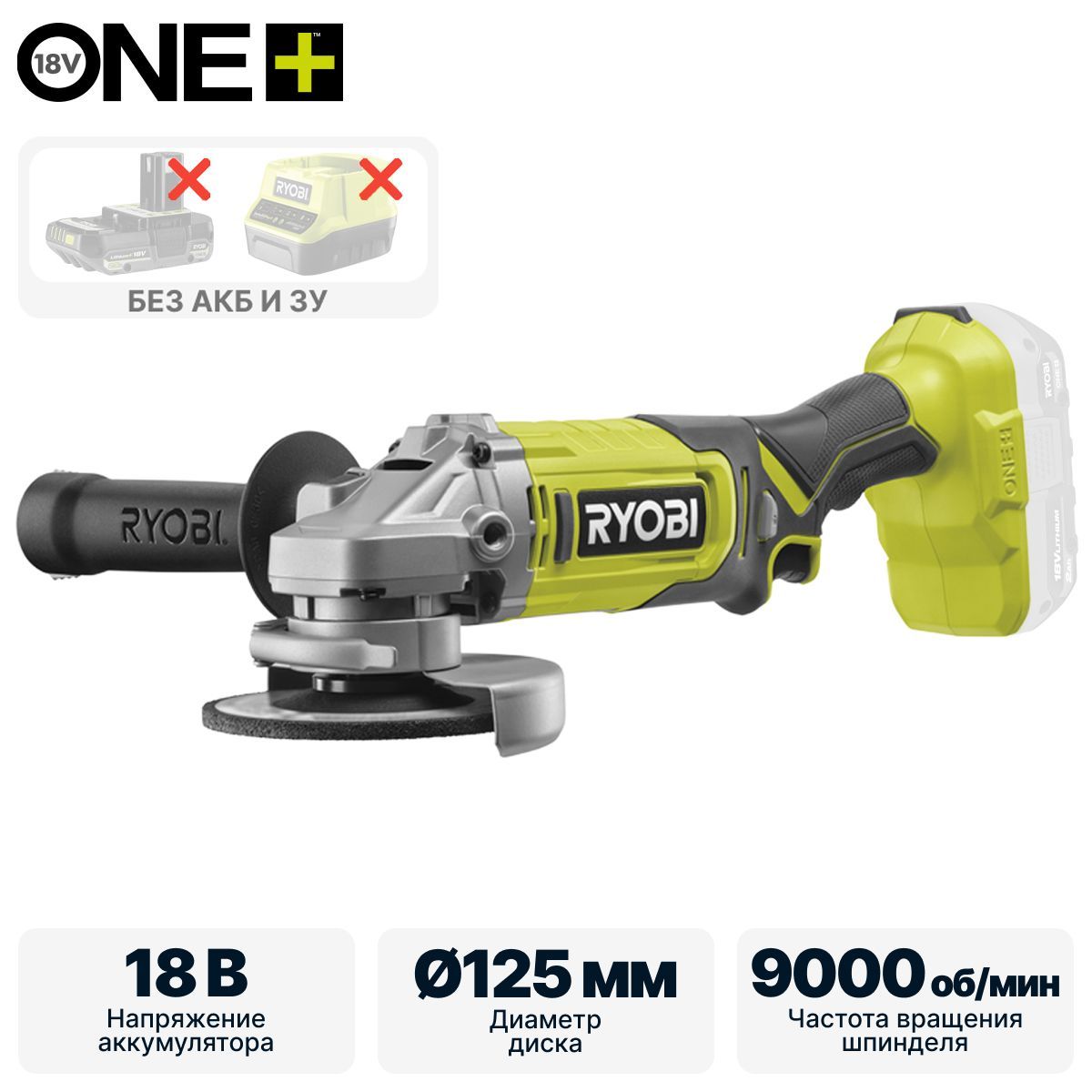 18 В, щеточный двигатель, диск 125 мм, 9000 об/мин, бесключевой 2-в-1 защитный кожух, защита от случайного включения, вес 2,2 кг