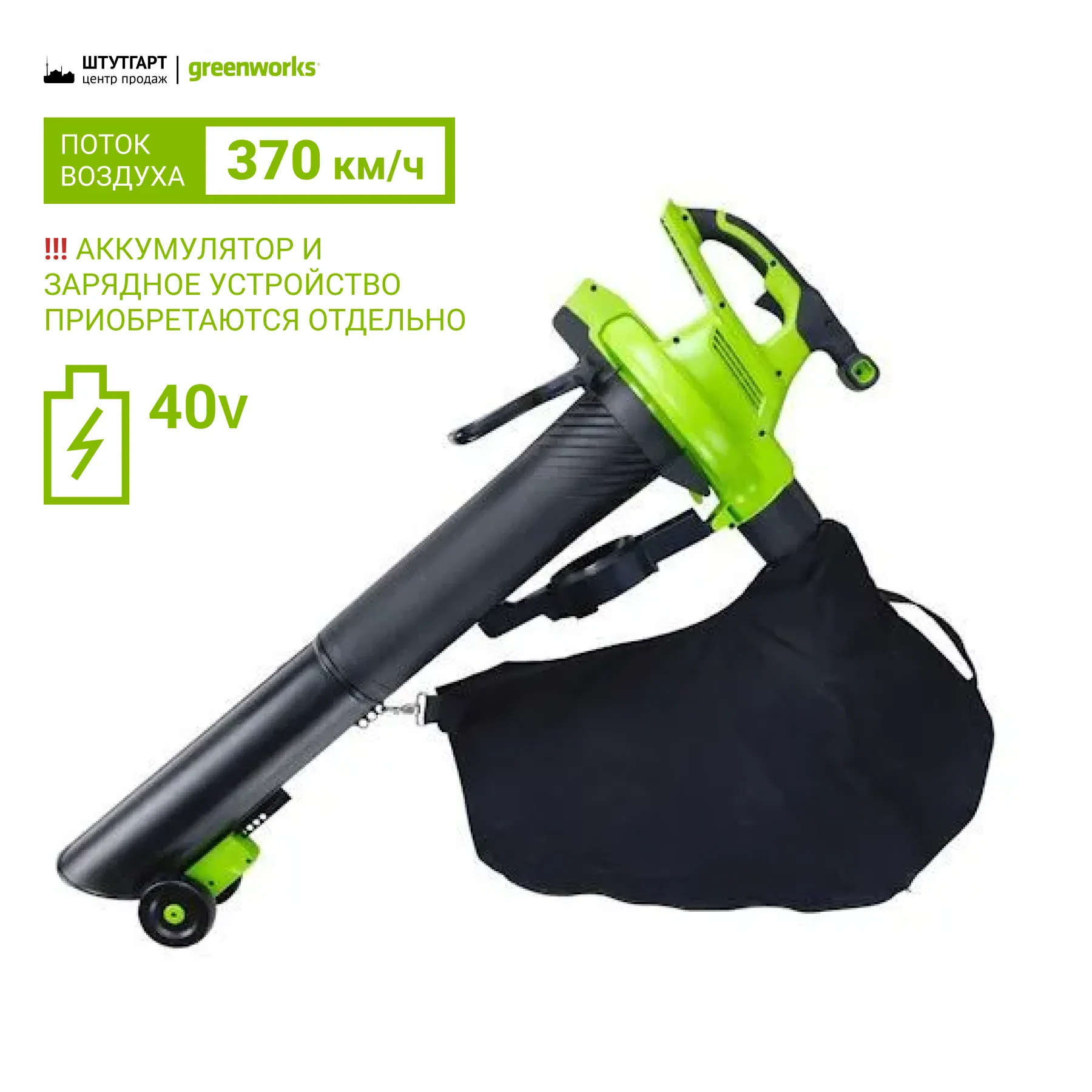 - Работа от Li-ion аккумулятора 40V совместимого с 50+ моделями инновационного садового инструмента из линейки Greenworks 40V.