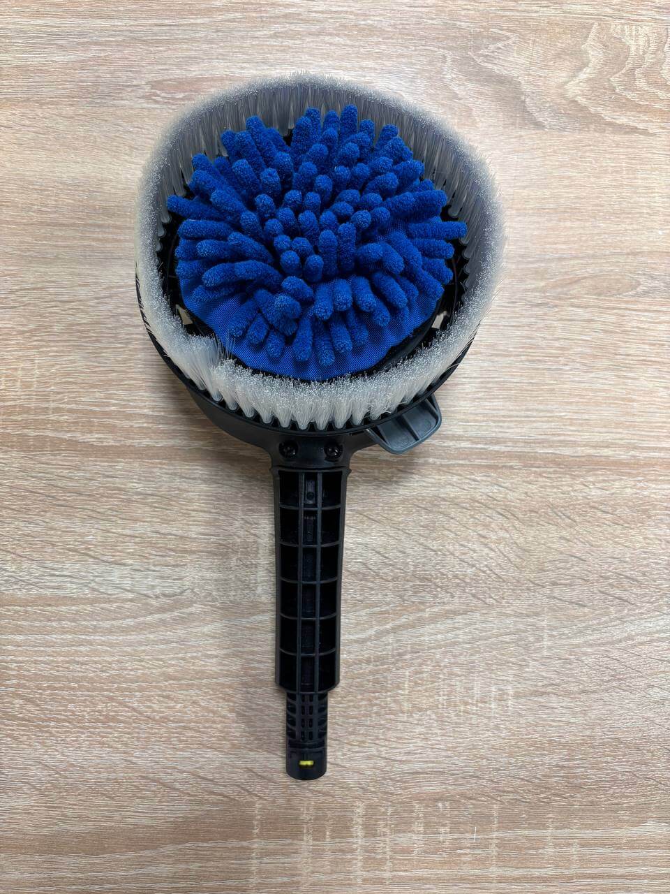 По окончании работы текстильную накладку можно выстирать в машине при температуре 60 °C. Вращающаяся щетка совместима со всеми аппаратами высокого давления Karcher классов K 2 – K 7. При необходимости может дополнительно использоваться чистящее средство, подаваемое аппаратом высокого давления, к которому присоединена щетка.