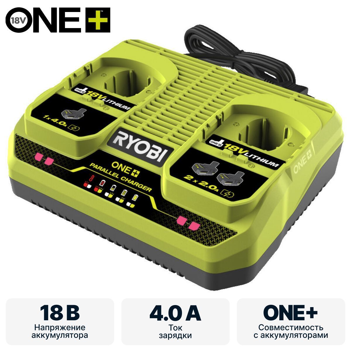 ONE+ зарядное устройство совместимо со всеми аккумуляторами ONE+ 18В Lithium.