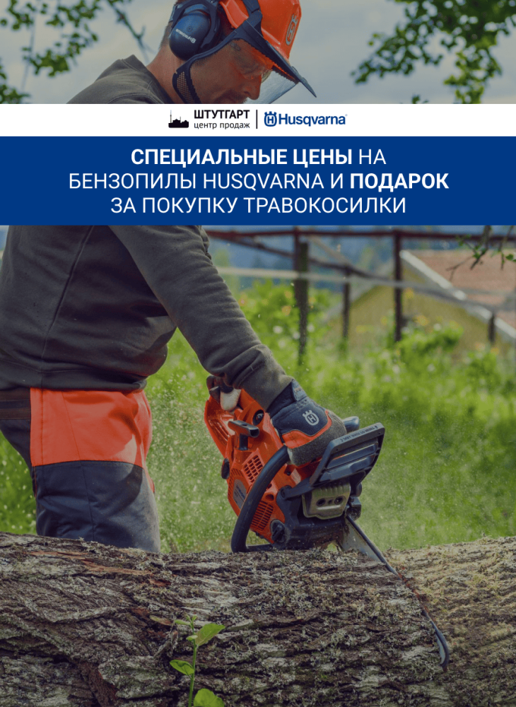 С 21 мая специальные цены на бензопилы Husqvarna и подарок за покупку травокосилки.